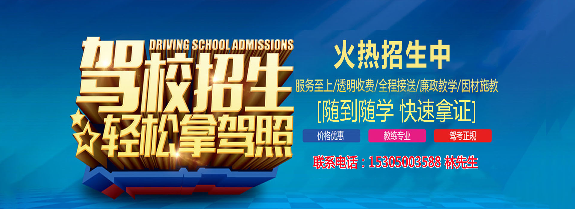 泉州市行車(chē)人汽車(chē)服務(wù)有限公司中營(yíng)駕校成立于2005年1月12日,是泉州市*批通過(guò)福建省交通廳驗(yàn)收合格的駕駛培訓(xùn)學(xué)校。經(jīng)過(guò)多年的發(fā)展公司現(xiàn)擁有教學(xué)車(chē)輛數(shù)十部,培養(yǎng)了一支經(jīng)驗(yàn)豐富、技術(shù)過(guò)硬、紀(jì)律嚴(yán)明,經(jīng)過(guò)正規(guī)培訓(xùn)并獲得了準(zhǔn)教證的教練員隊(duì)伍,公司辦學(xué)理念新穎,在“微笑服務(wù)”的同時(shí)嚴(yán)把技術(shù)大關(guān),堅(jiān)持“用心服務(wù),精心施教”的原則,實(shí)行報(bào)名、培訓(xùn)、考試、(新手陪駕,汽車(chē)年檢,車(chē)輛過(guò)戶(hù),二手車(chē)咨詢(xún),二手車(chē)評(píng)估,驗(yàn)資報(bào)告,補(bǔ)證換證,保險(xiǎn)代理)拿證等其他服務(wù)項(xiàng)目...