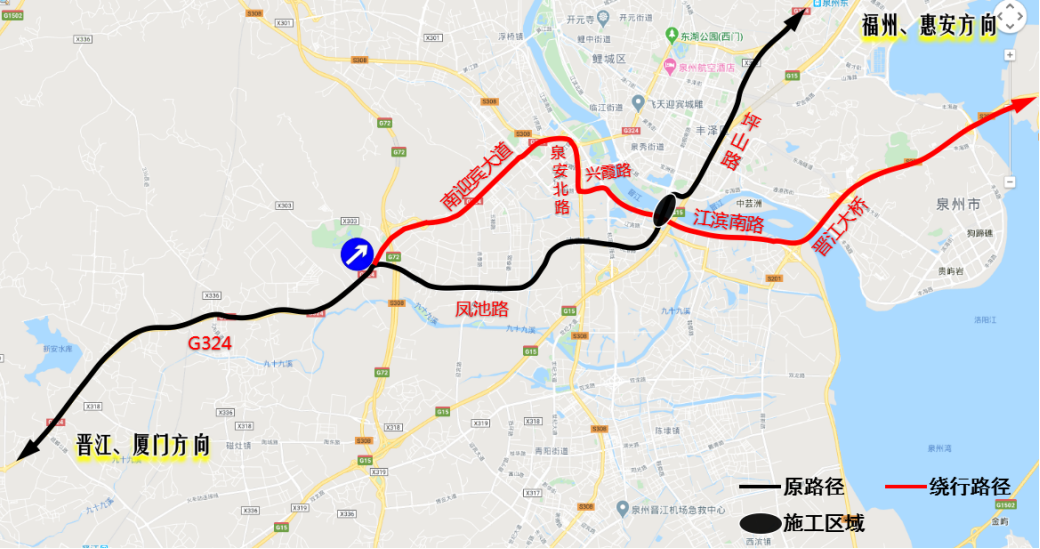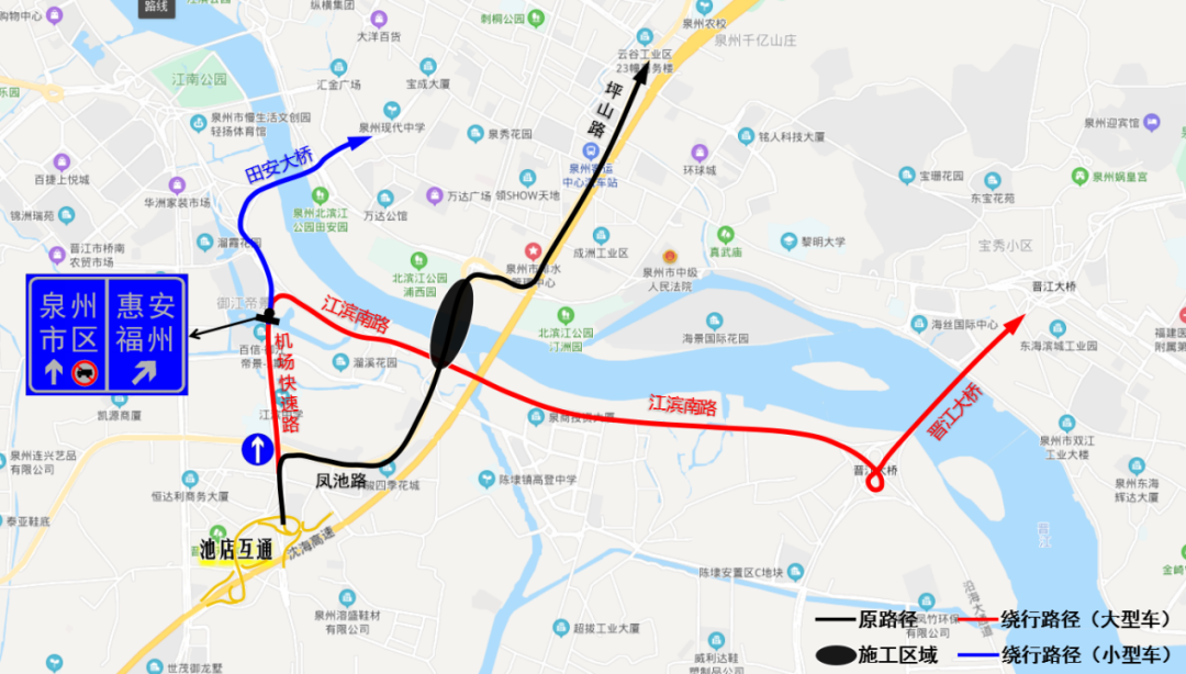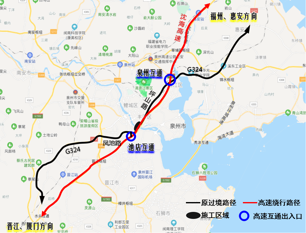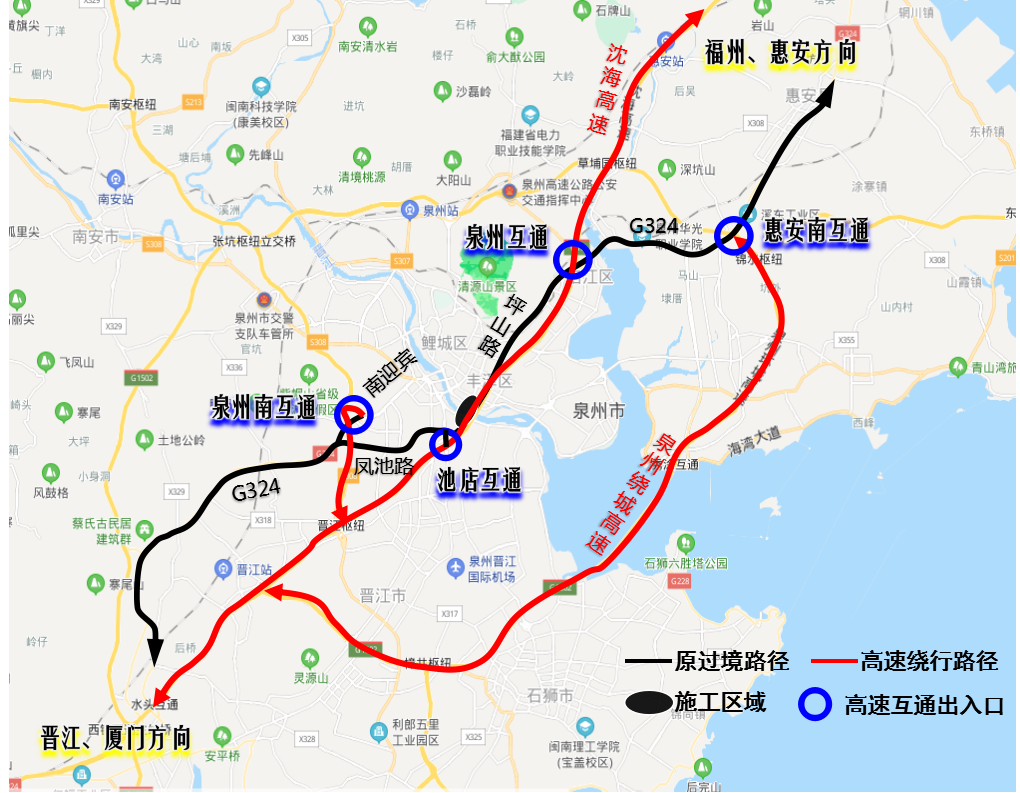 (池店高速互通出口往泉州市區(qū)方向繞行路徑圖)